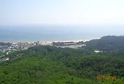 멀리 이기대 공원이 있는 장산봉과 오륙도